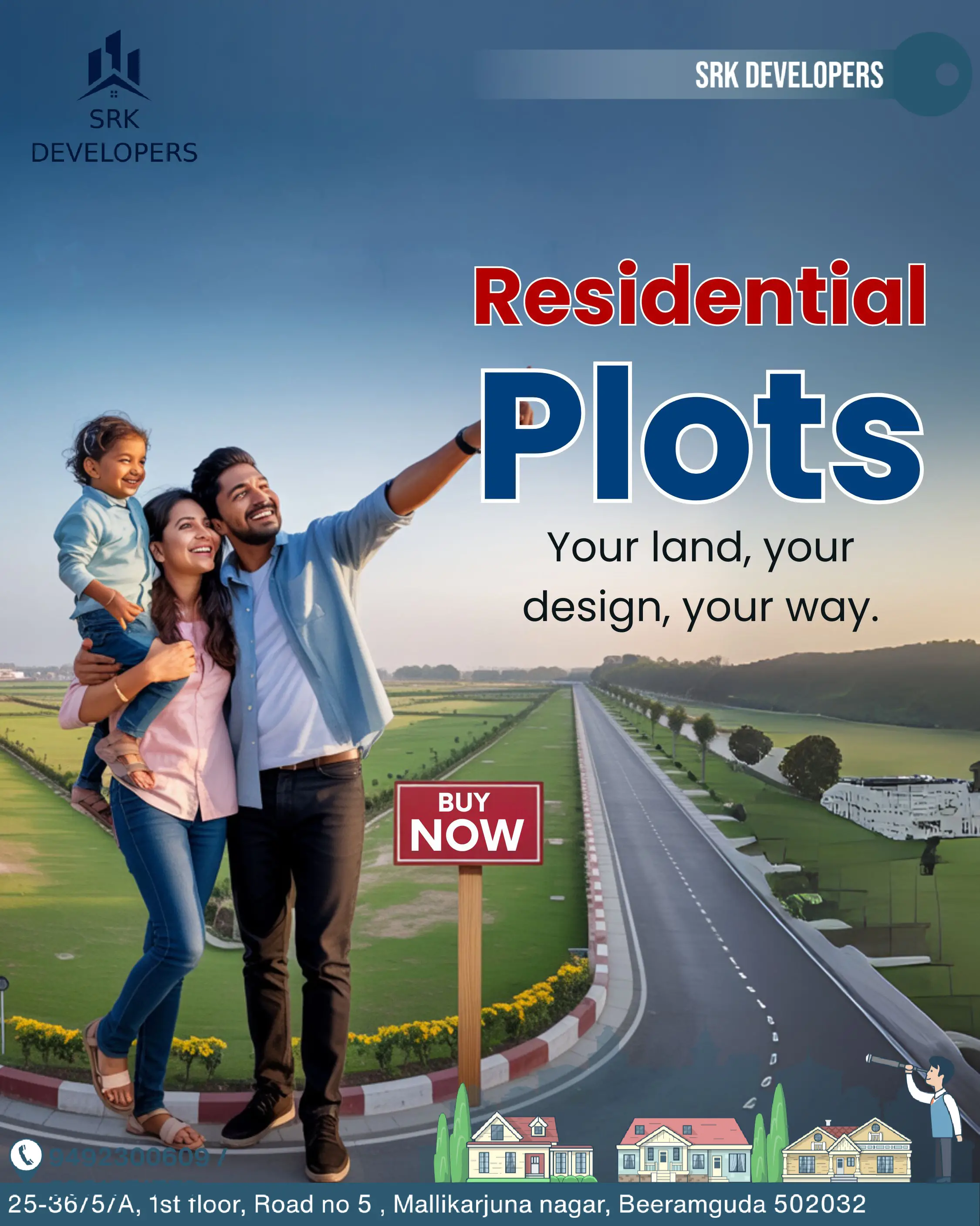 SRK DEVELOPERS specializes in marketing open plots and apartments, offering reliable real estate solutions tailored for Indian buyers and investors. We focus on transparency and customer satisfaction to help you find your perfect property.